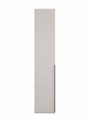 Распашной шкаф пенал имеет 1 дверцу с длинной профильной ручкой черного цвета. В комплекте идут полки (5 штук) и горизонтальная штанга. Это позволяет создать нужное наполнение напольному пеналу: он может выполнять функции бельевого, плательного или быть комбинированным (особенно актуально для детской комнаты, ведь одежда на плечиках не занимает много места и на оставшемся пространстве можно установить полки и положить туда другие вещи).