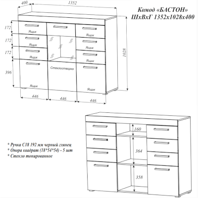 Комод Бастон (Эра) продается в интернет-магазине mebelin-fryazino.ru по цене 13 534 руб. Есть доставка по Фрязино и Московской области. Возможность подъема на этаж и сборки уточняйте у менеджера по телефону 8(800)505-27-11.